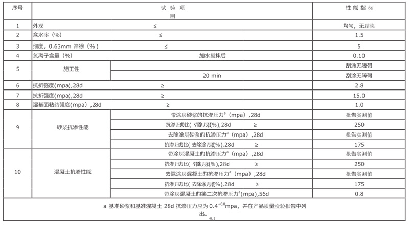 水泥基渗透 结 晶型防水涂料 符合 gb18445-2012 标 准〃物理力学性能